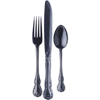 Kikkerland's Orleans Flatware is made of polycarbonate plastic, which is durable and dishwasher-safe. These utensils are a perfect way to change up your flatware for a party. Now how to decide- black or white??