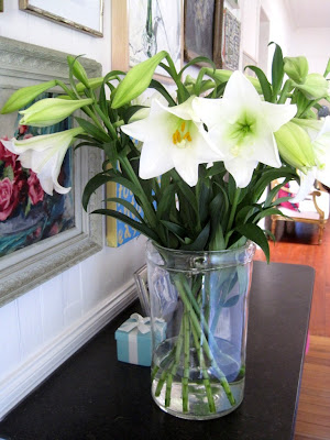 Last night we had some friends over for dinner. It was cold so we lit the fire. I arranged fresh Lillies and leaves from our garden on our coffee table and I lit lots of candles. Candles and flowers make me so happy.