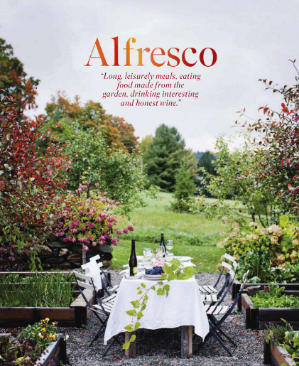 The couple’s Vermont cottage is in the town of Woodstock and is surrounded by a vineyard, a winery, an organic garden, and a restaurant and wine bar. Caleb makes some of the furnishing for the home and the restaurant. The style of the home is laid back and a bit formal. ENJOY!